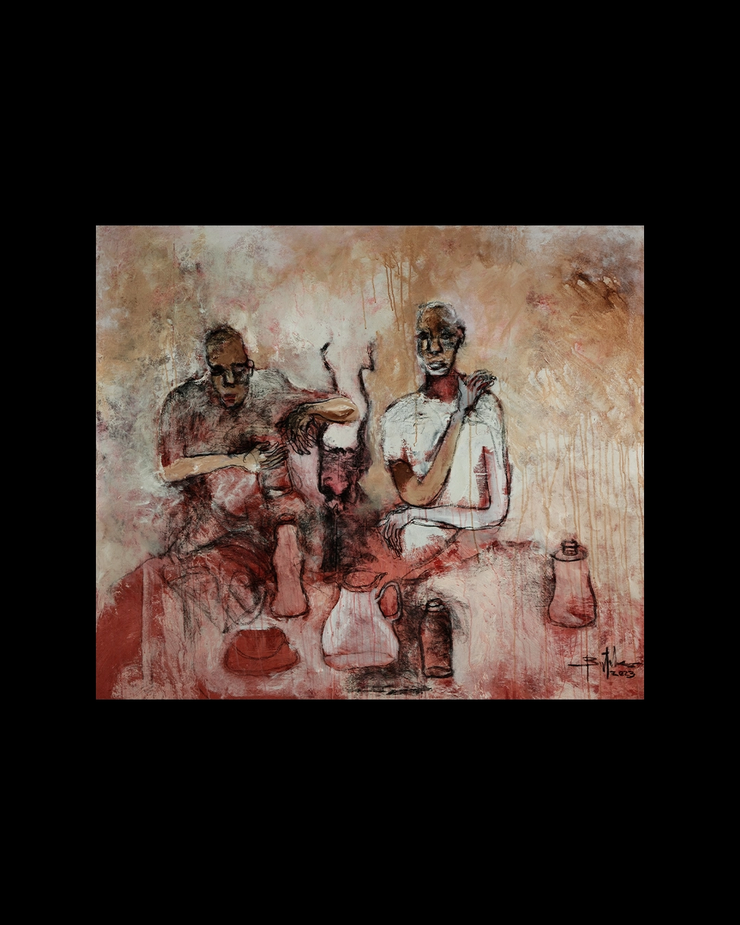 Se na escultura é um recolector por excelência, já que reúne tudo aquilo a permitir transpor, para a obra final, o que antecipa na mente naqueles momentos em que afirma que “mesmo sem som dançamos sozinhos”; na pintura vem como aquele que retrata difusa e fantasmaticamente, em composições-dilemas da própria perceção.